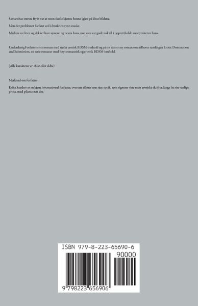 Samanthas største frykt var at noen skulle kjenne henne igjen på disse bildene. Men det problemet ble løst ved å bruke en tynn maske. Masken var liten og dekket bare øynene og nesen hans, noe som var godt nok til å opprettholde anonymiteten hans. Underdanig Forfatter er en roman med sterkt erotisk BDSM-innhold og på sin side en ny roman som tilhører samlingen Erotic Domination and Submission, en serie romaner med høyt romantisk og erotisk BDSM-innhold. (Alle karakterer er 18 år eller eldre) Merknad om forfatter: Erika Sanders er en kjent internasjonal forfatter, oversatt til mer enn tjue språk, som signerer sine mest erotiske skrifter, langt fra sin vanlige prosa, med pikenavnet sitt.