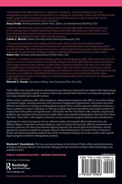 This book is the first of its kind to offer concrete, experienced guidance, tips, and general best practices in public affairs and nonprofit undergraduate education from those who have 'been there,' with chapters written by current and former program administrators and directors.