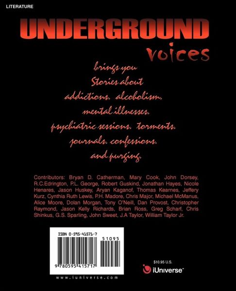 Underground Voices brings you stories about addictions. alcoholism. mental illnesses. psychiatric sessions. torments. journals. confessions. and purging.