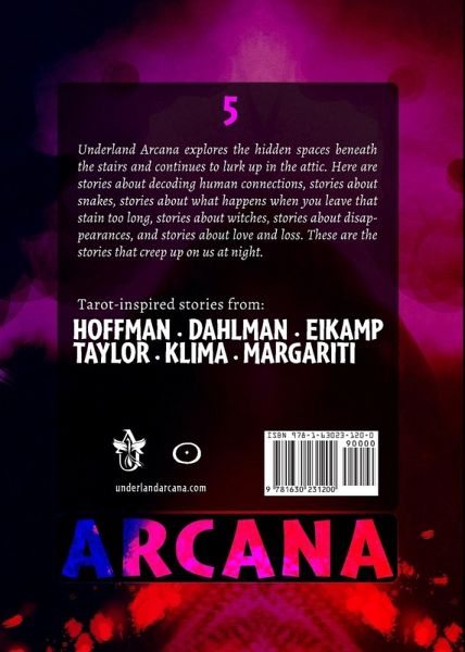 Underland Arcana explores the hidden spaces beneath the stairs and continues to lurk up in the attic. Here are stories about decoding human connections, stories about snakes, stories about what happens when you leave that stain too long, stories about witches, stories about disappearances, and stories about love and loss. These are the stories that creep up on us at night. This issue contains stories from Nina Kiriki Hoffman, Marilee Dahlman, Rhonda Eikamp, Jordan Taylor, John Klima, and Avra Margariti.