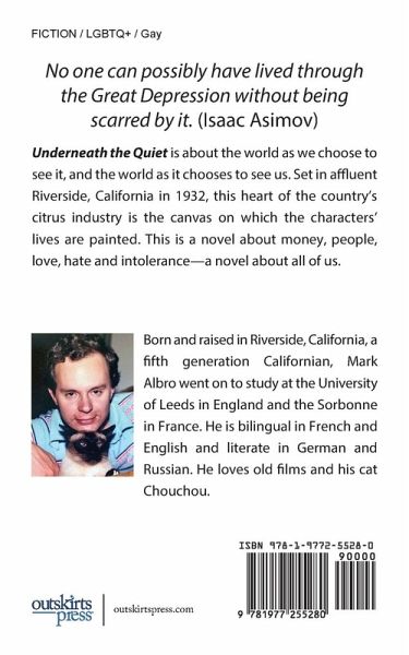 Maureen and Bertha Callahan are competitive sisters in a dysfunctional family in 1932 Riverside, California, whose relationship is made even more complex by Maureen's unique perspective and behaviors (guided by what today might be called autism). Into their world, launches handsome Cuthbert, the disgraced scion of a wealthy New York family. Though he becomes part of the Callahan social circle when he begins a painting of the family house, Cuthbert is ever more entangled in it when he finds love with a young man who has been riding the rails from San Antonio, Texas. Though Underneath the Quiet hurtles toward a culminating grand party, a rifle, and a double murder, Mark Albro has not written just a twisty family drama but an exploration of life on the autism spectrum, a historical novel about sometimes surprising social norms, and a love letter to a vanishing Southern California, where wonderful orange groves are being replaced by cookie-cutter tract houses.