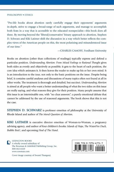 Stephen D. Schwarz is Professor Emeritus of Philosophy at the University of Rhode Island, where he started teaching in 1963. He continues teaching on a part-time basis, including ethics and the philosophy of the human person. The present book developed from lectures and discussions on abortion in his ethics classes over the last 30 years or so. He studied philosophy at Fordham University under Dietrich von Hildebrand and Balduin Schwarz, his father. He received his BA and MA at Fordham and his Ph. D. at Harvard and he is the author of The Moral Question of Abortion (Chicago: Loyola Press, 1990). Kiki Latimer collaborated with Stephen Schwarz in the production of this book. She wrote the opening section, "Oh my God, I'm pregnant." She has served as his teaching assistant in ethics and other classes over the last 25 years. She received her BA in speech communication and psychology, with a minor in philosophy from the University of Rhode Island; she graduated Summa cum Laude. She served as executive director at Woman-to-Woman, a pregnancy advising agency for 20 years. She is the author of three children's books: Islands of Hope (Coconut Creek, FL: Educa Vision, Inc., 2009), The WaterFireDuck (Coconut Creek, FL: Educa Vision, Inc., 2009), Bubble Butt! (Coconut Creek, FL: Educa Vision, Inc., 2010) www.kikilatimer.com