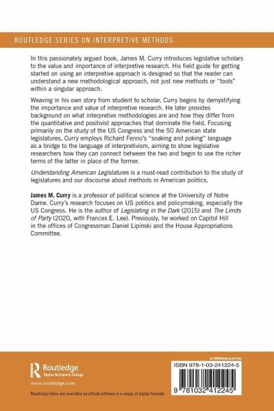 In this book, James M. Curry introduces legislative scholars to the value and importance of interpretive research. Understanding American Legislatures is a must-read contribution to the study of legislatures and our discourse about methods in American politics.