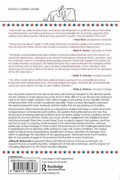 How do parties respond to the electorate and craft winning strategies? In the abstract parties are the vehicles to make democracy work, but it is often difficult to see the process working as well as we think it might. Indeed, voters often struggle to see parties as the valuable vehicles of representation that so many academics describe. There is a clear discrepancy between the ideal expressed in many textbooks and the reality that we see playing out in politics. Noted scholar Jeffrey Stonecash gives us a big picture analysis that helps us understand what is happening in contemporary party politics. He explains that parties behave the way they do because of existing political conditions and how parties adapt to those conditions as they prepare for the next election. Parties are unsure if realignment has stabilized and just what issues brought them their current base. Does a majority support their positions and how are they to react to ongoing social change? Is the electorate paying attention, and can parties get a clear message to those voters? This book focuses on the challenges parties face in preparing for future elections while seeking to cope with current conditions. This coping leads to indecisiveness of positioning, simplification of issues, repetition of messages, and efforts to disparage the reputation of the opposing party. Stonecash sheds much needed light on why parties engage in the practices that frustrate so many Americans.