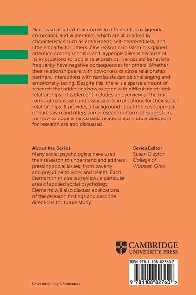 This Element provides an overview of narcissism, a trait characterized by entitlement, self-centeredness, and little empathy. It discusses its impact on social relationships with coworkers and close partners. Research on coping strategies for narcissistic relationships is limited. It offers some research-informed suggestions to cope.