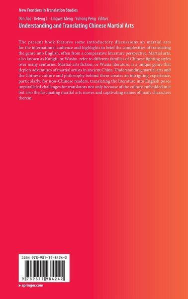The present book features some introductory discussions on martial arts for the international audience and highlights in brief the complexities of translating the genre into English, often from a comparative literature perspective. Martial arts, also known as Kungfu or Wushu, refer to different families of Chinese fighting styles over many centuries. Martial arts fiction, or Wuxia literature, is a unique genre that depicts adventures of martial artists in ancient China. Understanding martial arts and the Chinese culture and philosophy behind them creates an intriguing experience, particularly, for non-Chinese readers; translating the literature into English poses unparalleled challenges for translators not only because of the culture embedded in it but also the fascinating martial arts moves and captivating names of many characters therein.
