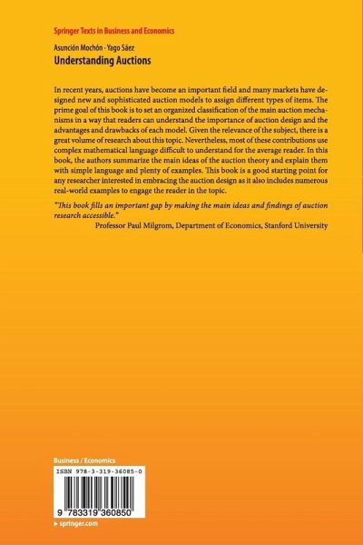 In recent years, auctions have become an important field and many markets have designed new and sophisticated auction models to assign different types of items. The prime goal of this book is to set an organized classification of the main auction mechanisms in a way that readers can understand the importance of auction design and the advantages and drawbacks of each model. Given the relevance of the subject, there is a great volume of research about this topic.