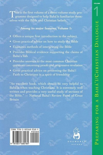 This if the first volume of a three-volume study programme designed to help Baha'Is familiarize themselves with the Bible and Christian beliefs. Among its major features,Volume 1: - Offers a unique first introduction to the subject - Gives practical advice on how to study the Bible - Examines methods of interpreting the Bible - Provides Biblical evidence supporting the claims of Baha'u'llah - Provides answers to the most common Christian questions concerning proofs and progressive revelation - Gives practical advice on presenting the Baha'I Faith to Christians in a spirit of friendship