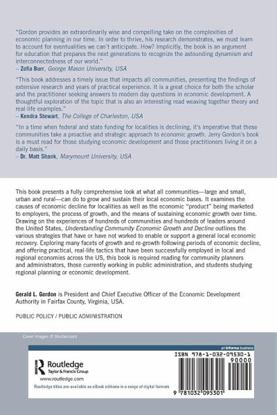This book presents a fully comprehensive look at what all communities-large and small, urban and rural-can do to grow and sustain their local economic bases. It examines the causes of economic decline for localities as well as the economic "product" being marketed to employers, the process of growth, and the means of sustaining economic growth over time. Drawing on the experiences of hundreds of communities and hundreds of leaders around the United States, Understanding Community Economic Growth and Decline outlines the various strategies that have or have not worked to enable or support a general local economic recovery. Exploring many facets of growth and re-growth following periods of economic decline, and offering practical, real-life tactics that have been successfully employed in local and regional economies across the US, this book is required reading for community planners and administrators, those currently working in public administration, and students studying regional planning or economic development.