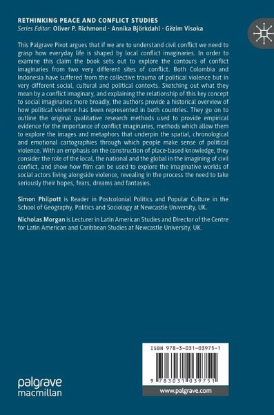This Palgrave Pivot argues that if we are to understand civil conflict we need to grasp how everyday life is shaped by local conflict imaginaries. In order to examine this claim the book sets out to explore the contours of conflict imaginaries from two very different sites of conflict. Both Colombia and Indonesia have suffered from the collective trauma of political violence but in very different social, cultural and political contexts. Sketching out what they mean by a conflict imaginary, and explaining the relationship of this key concept to social imaginaries more broadly, the authors provide a historical overview of how political violence has been represented in both countries. They go on to outline the original qualitative research methods used to provide empirical evidence for the importance of conflict imaginaries, methods which allow them to explore the images and metaphors that underpin the spatial, chronological and emotional cartographies through which people make sense of political violence. With an emphasis on the construction of place-based knowledge, they consider the role of the local, the national and the global in the imagining of civil conflict, and show how film can be used to explore the imaginative worlds of social actors living alongside violence, revealing in the process the need to take seriously their hopes, fears, dreams and fantasies.