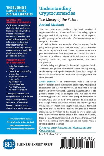 The book intends to provide a high level overview of cryptocurrencies to a new enthusiast by using layman language and limiting many of the technical aspects, providing a very condensed version of this vast development of digital currencies. Blockchain is the new revolution after the Internet that is going to change how we do business today. Cryptocurrencies are the money of the future. These two statements are a positive affirmation from many corners around the world. The author provides a balance of introduction and depth regarding blockchain, hot cryptocurrencies, and their comparisons. Bitcoin, being the pioneer, is discussed in greater detail. The reader will gain the basic idea of bitcoin mining, trading, and investing. With special interest in the various usages of blockchain and interest on traditional banking systems are also discussed.