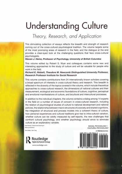 This volume contains contributions from 24 internationally known scholars covering a broad spectrum of interests in cross-cultural theory and research. This breadth is reflected in the diversity of the topics covered in the volume's chapters, as well as in a closing dialog between 14 of the field's top experts.