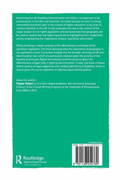 Examining the UK Disability Discrimination Act (DDA) in comparison to its counterparts in the USA and Australia, this book focuses on how it is being interpreted and acted upon in the context of higher education, a key area of national attention in the UK. It also evaluates this law in the context of the larger project of civil rights legislation and demonstrates that geography can be used to explain law and legal arguments by highlighting their subjectivity and by emphasizing the importance of place, specificity and context.