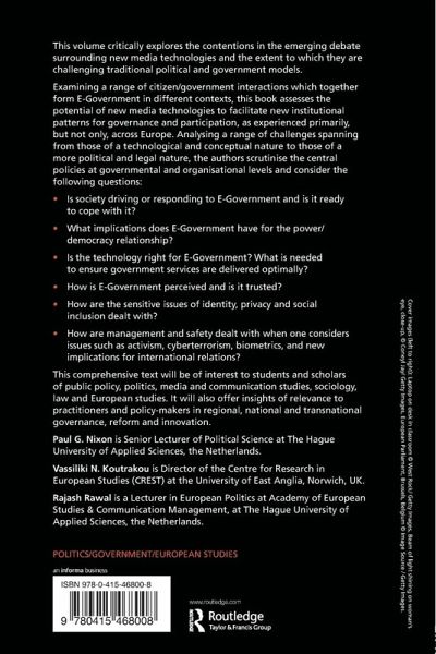 This volume critically explores the contentions in the emerging debate surrounding new media technologies and the extent to which they are challenging traditional political and government models. Examining a range of citizen/government interactions which together form e-government in different contexts, this book assesses the potential of new media technologies to facilitate new institutional patterns for governance and participation, as experienced primarily, but not only, across Europe. Analysing a range of challenges spanning from those of a technological and conceptual nature to those of a more political and legal nature, the authors scrutinise the central policies at governmental and organisational levels and consider the following questions: Is society driving or responding to e-government and is it ready to cope with it? What implications does e-government have for the power/democracy relationship? Is the technology right for e-government? What is needed to ensure government services are delivered optimally? How is e-government perceived and is it trusted? How are the sensitive issues of identity, privacy and social inclusion dealt with? How are management and safety dealt with when one considers issues such as activism, cyberterrorism, biometrics, and new implications for international relations? This comprehensive text will be of interest to students and scholars of public policy, politics, media and communication studies, sociology, law and European studies. It will also offer insights of relevance to practitioners and policy-makers in regional, national, and transnational governance, reform and innovation.