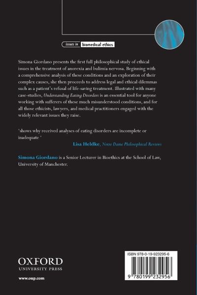 Simona Giordano presents the first full philosophical study of ethical issues in the treatment of anorexia and bulimia nervosa. Beginning with a comprehensive analysis of these conditions and an exploration of their complex causes, she then proceeds to address legal and ethical dilemmas such as a patient's refusal of life-saving treatment. Illustrated with many case-studies, Understanding Eating Disorders is an essential tool for anyone working with sufferers of these much misunderstood conditions, and for all those ethicists, lawyers, and medical practitioners engaged with the widely relevant issues they raise.