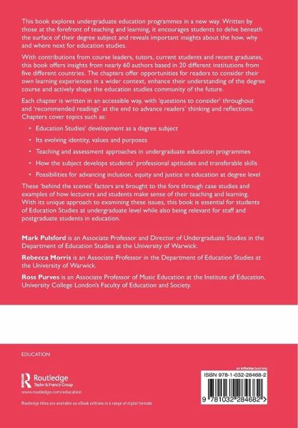 Understanding Education Studies explores undergraduate education programmes in a new way. Written by those at the forefront of teaching and learning, it encourages students to delve beneath the surface of their degree subject and reveals important insights about the how, why and where next for education studies.