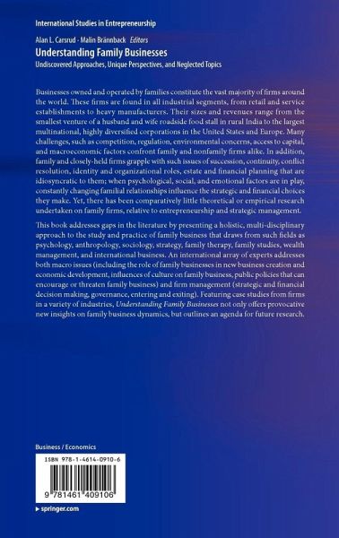 This book addresses gaps in the literature by presenting a holistic, multi-disciplinary approach to the study and practice of family business that draws from such fields as psychology, anthropology, sociology, strategy, family therapy, family studies, wealth management, and international business. An international array of experts addresses both macro issues (including the role of family businesses in new business creation and economic development, influences of culture on family business, public policies that can encourage or threaten family business) and firm management (strategic and financial decision making, governance, entering and exiting). Featuring case studies from firms in a variety of industries, Understanding Family Businesses not only offers provocative new insights on family business dynamics, but outlines an agenda for future research.