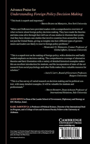 Part I. Introduction: 1. Why study foreign policy from a decision making perspective?; Part II. The Decision Environment: 2. Types of decisions and levels of analysis in foreign policy decision making; 3. Biases in decision making; Part III. Models of Decision Making: 4. The rational actor model; 5. Alternatives to the rational actor model; Part IV. Determinants of Foreign Policy Decision Making: 6. Psychological factors shaping foreign policy decisions; 7. International, domestic and cultural factors influencing foreign policy decision making; Part V. Marketing Foreign Policy: 8. Marketing, framing and media effects in foreign policy decision making; Part VI. Conclusion: 9. Conclusion: wrapping things up; Appendix: an applied decision analysis exercise and simulation.