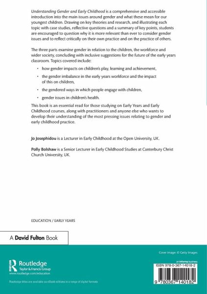 This book is a comprehensive and accessible introduction into the main issues around gender, and what these mean for our children. Students are encouraged to question why it is more relevant than ever to consider gender issues and reflect critically on their practice and on the practice of others.