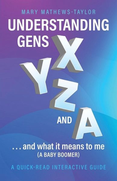 X Y Z AND A? What? Understanding Gens X, Y, Z, and A is an interactive guide that will take you on a quick journey of short stories and stats, which will assist you in becoming more current with the basics of the present, the past, and the generations to come!