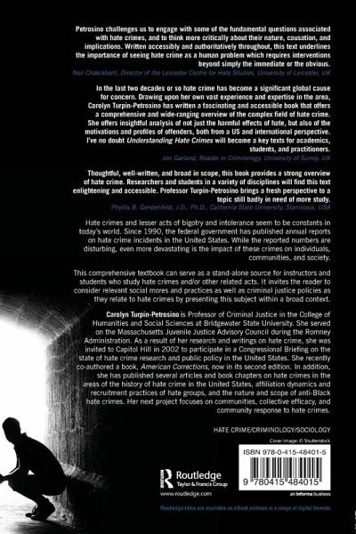Hate crimes and lesser acts of bigotry and intolerance are seen to be constants in today's world. Since 1990, the federal government has published annual reports on hate crime incidents in the United States. While the reported numbers are disturbing, even more devastating is the impact of these crimes on individuals, communities, and society. This comprehensive textbook can serve as a stand-alone source for instructors and students who study hate crimes and/or other related acts. It invites the reader to consider relevant social mores and practices as well as criminal justice policies as they relate to hate crimes by presenting this subject within a broad context.