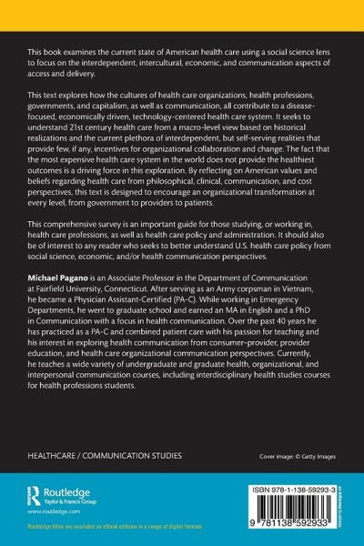 This book examines the current state of American health care using a social science lens to focus on the interdependent, intercultural, economic, and communication aspects of access and delivery. This text explores how the cultures of health care organizations, health professions, governments, and capitalism, as well as communication, all contribute to a disease-focused, economically driven, technology-centered health care system. It seeks to understand 21st century health care from a macro-level view based on historical realizations and the current plethora of interdependent, but self-serving realities that provide few, if any, incentives for organizational collaboration and change. The fact that the most expensive health care system in the world does not provide the healthiest outcomes is a driving force in this exploration. By reflecting on American values and beliefs regarding health care from philosophical, clinical, communication, and cost perspectives, this text is designed to encourage an organizational transformation at every level, from government to providers to patients. This comprehensive survey is an important guide for those studying, or working in, health care professions, as well as health care policy and administration. It should also be of interest to any reader who seeks to better understand U.S. health care policy from social science, economic, and/or health communication perspectives.