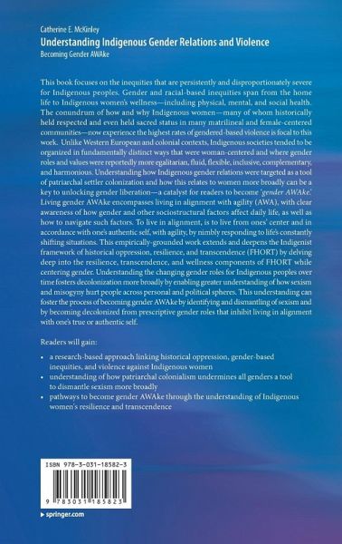 This book focuses on the inequities that are persistently and disproportionately severe for Indigenous peoples. Gender and racial based inequities span from the home life to Indigenous women's wellness-including physical, mental, and social health. The conundrum of how and why Indigenous women-many of whom historically held respected and even held sacred status in many matrilineal and female-centered communities-now experience the highest rates of gendered based violence is focal to this work. Unlike Western European and colonial contexts, Indigenous societies tended to be organized in fundamentally distinct ways that were woman-centered and where gender roles and values were reportedly more egalitarian, fluid, flexible, inclusive, complementary, and harmonious. Understanding how Indigenous gender relations were targeted as a tool of patriarchal settler colonization and how this relates to women more broadly can be a key to unlocking gender liberation-a catalyst for readers tobecome 'gender AWAke.' Living gender AWAke encompasses living in alignment with agility (AWA) with clear awareness of how gender and other sociostructural factors affect daily life, as well as how to navigate such factors. To live in alignment, is to live from ones' center and in accordance with one's authentic self, with agility, by nimbly responding to life's constantly shifting situations. This empirically grounded work extends and deepens the Indigenist framework of historical oppression, resilience, and transcendence (FHORT) by delving deep into the resilience, transcendence, and wellness components of FHORT while centering gender. Understanding the changing gender roles for Indigenous peoples over time fosters decolonization more broadly by enabling greater understanding of how sexism and misogyny hurt people across personal and political spheres. This understanding can foster the process of becoming gender AWAke by identifying and dismantling of sexism and by becoming decolonized from prescriptive gender roles that inhibit living in alignment with one's true or authentic self.