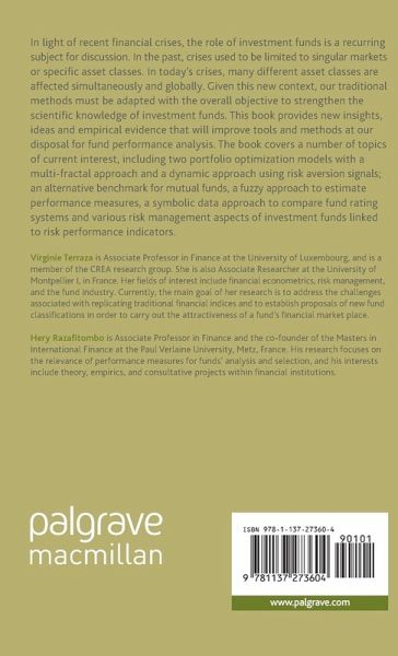 In light of recent financial crises, the role of investment funds is a recurring subject for discussion. Traditional methods must be adapted with the objective to strengthen scientific knowledge of investment funds. This book provides new insights, ideas and empirical evidence to improve tools and methods for fund performance analysis.