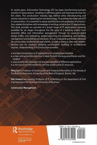 In recent years, Information Technology (IT) has been transforming business practice in many sectors resulting in efficiency gains and improved services for the client. The construction industry lags behind other manufacturing and service industries in adopting the new technology. To promote the wider use of IT in construction, it is essential to equip practitioners and graduates of construction related disciplines with knowledge of existing construction IT applications. This book provides an overview of a broad range of IT applications currently available for all stages throughout the life cycle of a building project, from essential office and information management through to computer-aided design (CAD), cost estimating, project planning and scheduling, and facilities management and building maintenance. It is an invaluable and handy reference for construction professionals and clients, as well as being a clear and comprehensive text for students studying construction, building or architectural courses.