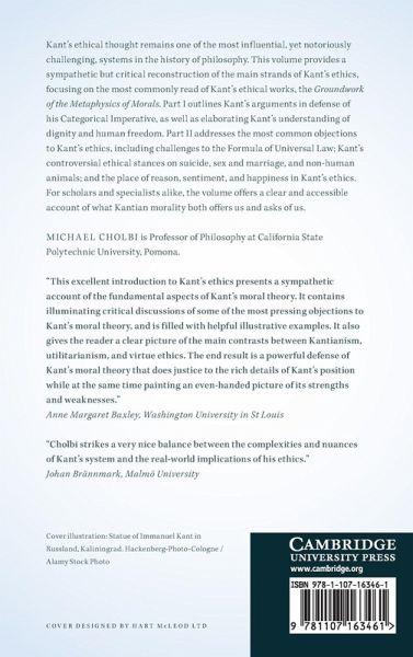 Kant's ethical thought remains one of the most influential, yet notoriously challenging, systems in the history of philosophy. This volume provides a sympathetic but critical reconstruction of the main strands of Kant's ethics, focusing on the most commonly read of Kant's ethical works, the Groundwork of the Metaphysics of Morals. Part I outlines Kant's arguments in defense of his Categorical Imperative, as well as elaborating Kant's understanding of dignity and human freedom. Part II addresses the most common objections to Kant's ethics, including challenges to the Formula of Universal Law; Kant's controversial ethical stances on suicide, sex and marriage, and non-human animals; and the place of reason, sentiment, and happiness in Kant's ethics. For scholars and specialists alike, the volume offers a clear and accessible account of what Kantian morality both offers us and asks of us.