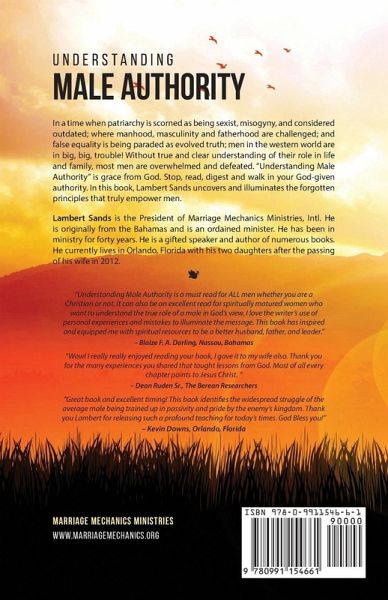 In a time when patriarchy is scorned as being sexist, misogyny, and considered outdated; where manhood, masculinity, and fatherhood are challenged; and false equality is paraded as evolved truth; men in the western world are in big, big trouble! Blinded and confused by what is said in the media and social circles, most men are overwhelmed and defeated. Without a true and clear understanding of who they are and their role in the family, men are failing. "Understanding Male Authority" is grace from God. Stop, read, digest, and walk in your God-given authority. In this book, Lambert Sand uncovers and illuminates the forgotten principles that truly empower men.