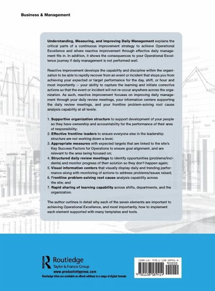 This book explains the critical parts of a continuous improvement strategy and where reactive improvement through effective daily management fits in. In addition, it shows the consequences if daily management is not performed well.