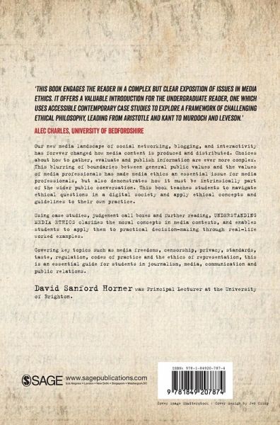 This book engages the reader in a complex but clear exposition of issues in media ethics. It offers a valuable introduction for the undergraduate reader, one which uses accessible contemporary case studies to explore a framework of challenging ethical philosophy, leading from Aristotle and Kant to Murdoch and Leveson.
