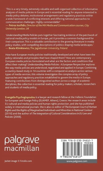 'This very timely, extremely valuable and well-organised collection of informative analyses of media policies in Europe is essential reading for anyone interested in media policy debates, institutional arrangements and regulatory practices within a wide framework of conflicting interests and differing national approaches to communication challenges. Highly commendable!' - Petros Iosifidis, Director of the MA Media and Communication courses, City University London, UK