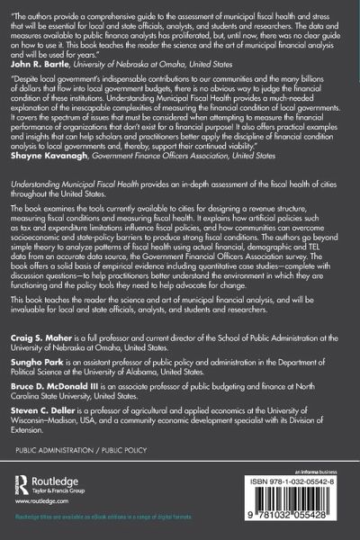 The book examines the tools currently available to cities for designing a revenue structure, measuring fiscal conditions and measuring fiscal health. It explains how artificial policies such as tax and expenditure limitations influence fiscal policies, and how communities can overcome socioeconomic and state-policy barriers to produce strong fiscal conditions. The authors go beyond simple theory to analyze patterns of fiscal health using actual financial, demographic and TEL data from an accurate data source, the Government Financial Officers Association survey. The book offers a solid basis of empirical evidence including quantitative case studies-complete with discussion questions-to help practitioners better understand the environment in which they are functioning and the policy tools they need to help advocate for change.