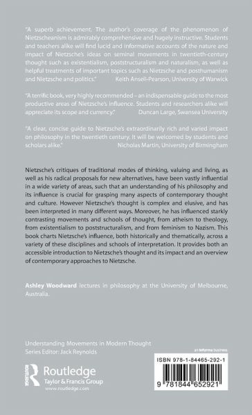 Nietzsche's critiques of traditional modes of thinking, valuing and living, as well as his radical proposals for alternatives, have been vastly influential in a wide variety of areas. This book charts Nietzsche's influence, both historically and thematically, across a variety of the contrasting disciplines and schools of interpretation.