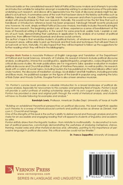 This book builds on the consolidated research field of Political Discourse Analysis and attempts to provide an introduction suitable for adoption amongst a readership wishing to understand some of the principles underlying such research, and above all to appreciate how the tools of discourse analysis might be applied to actual texts. It summarises some of the work that has been done in this field by authorities such as Halliday, Fairclough, Wodak, Chilton, Van Dijk, Martin, Van Leeuwen and others to provide the would-be analyst with practical ideas for their own research. Naturally, this would not be the first time that such a handbook or introductory reference book has been proposed. Fairclough himself recently produced one; however, his work, simply entitled Political Discourse Analysis, inevitably includes theoretical insights from his own research. The beginning analyst can, at times, experience a sense of bewilderment at the mass of theoretical writing in linguistics, in the search for some practical, usable tools. I explain a variety of such tools, demonstrating their usefulness in application to the analysis of a number of political speeches, from different historical periods and diverse social contexts. The author’s hope is that would-be students of political rhetoric, of whatever level and from a variety of research areas, will be able to pick up this book and find tools and techniques that will assist them in actual work on texts. Naturally, it is also hoped that they will be inspired to follow up the suggestions for further reading which they will find in the bibliography.