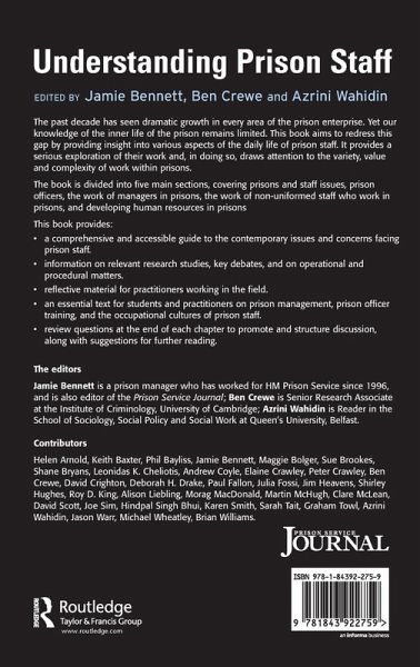 Jamie Bennett is Deputy Governor, HMP Whitemoor, and editor of the Prison Journal. Ben Crewe is Lecturer in Criminology at the Institute of Criminology, University of Cambridge. Azrini Wahidin is Reader in Criminology and Criminal Justice at Queen's University Belfast.