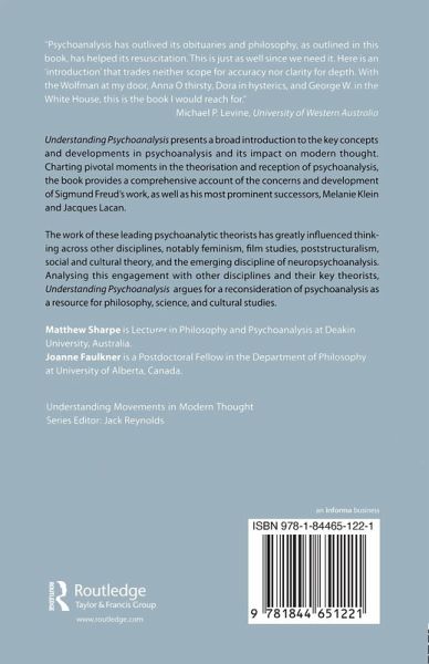 "Understanding Psychoanalysis" presents a broad introduction to the key concepts and developments in psychoanalysis and its impact on modern thought. Charting pivotal moments in the theorization and reception of psychoanalysis, the book provides a comprehensive account of the concerns and development of Freud's work, as well as his most prominent successors, Melanie Klein and Jacques Lacan.The work of these leading psychoanalytic theorists has greatly influenced thinking across other disciplines, notably feminism, film studies, poststructuralism, social and cultural theory, the philosophy of science and the emerging discipline of neuropsychoanalysis. Analysing this engagement with other disciplines and their key theorists, "Understanding Psychoanalysis" argues for a reconsideration of psychoanalysis as a resource for philosophy, science, and cultural studies.
