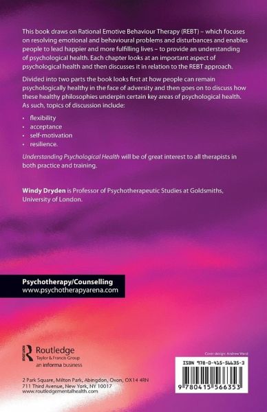 This book draws on Rational Emotive Behaviour Therapy (REBT) - which focuses on resolving emotional and behavioural problems and disturbances and enables people to lead happier and more fulfilling lives - to provide an understanding of psychological health. Each chapter looks at an important aspect of psychological health and then discusses it in relation to the REBT approach. Divided into two parts the book looks first at how people can remain psychologically healthy in the face of adversity and then goes on to discuss how these healthy philosophies underpin certain key areas of psychological health. As such, topics of discussion include: flexibility acceptance self-motivation resilience. Understanding Psychological Health will be of great interest to all therapists in both practice and training.