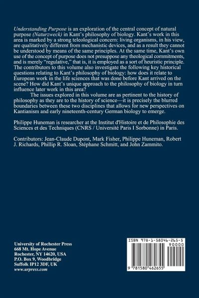 A collection of essays investigating key historical and scientific questions relating to the concept of natural purpose in Kant's philosophy of biology.