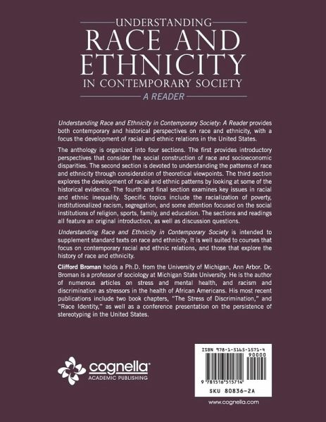 Understanding Race and Ethnicity in Contemporary Society: A Reader provides both contemporary and historical perspectives on race and ethnicity, with a focus the development of racial and ethnic relations in the United States. The anthology is organized into four sections. The first provides introductory perspectives that consider the social construction of race and socioeconomic disparities. The second section is devoted to understanding the patterns of race and ethnicity through consideration of theoretical viewpoints. The third section explores the development of racial and ethnic patterns by looking at some of the historical evidence. The fourth and final section examines key issues in racial and ethnic inequality. Specific topics include the racialization of poverty, institutionalized racism, segregation, and some attention focused on the social institutions of religion, sports, family, and education. The sections and readings all feature an original introduction, as well as discussion questions. Understanding Race and Ethnicity in Contemporary Society is intended to supplement standard texts on race and ethnicity. It is well suited to courses that focus on contemporary racial and ethnic relations, and those that explore the history of race and ethnicity. Clifford Broman holds a Ph.D. from the University of Michigan, Ann Arbor. Dr. Broman is a professor of sociology at Michigan State University. He is the author of numerous articles on stress and mental health, and racism and discrimination as stressors in the health of African Americans. His most recent publications include two book chapters, "The Stress of Discrimination," and "Race Identity," as well as a conference presentation on the persistence of stereotyping in the United States.