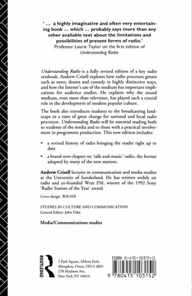 '... a highly imaginative and often very entertaining book ... which ... probably says more than any other available text about the limitations and possibilities of present forms of radio.' Professor Laurie Taylor on the first edition of Understanding Radio Understanding Radio is a fully revised edition of a key radio textbook. Andrew Crisell explores how radio processes genres such as news, drama and comedy in highly distinctive ways, and how the listener's use of the medium has important implications for audience studies. He explains why the sound medium, even more than television, has played such a crucial role in the development of modern popular culture. The book also introduces students to the broadcasting landscape in a time of great change for national and local radio provision. Understanding Radio will be essential reading both to students of media and to those with a practical involvement in programme production. This new edition includes: a revised history of radio bringing the reader right up to date a brand new chapter on 'talk-and-music' radio, the format adopted by many of the new stations. Andrew Crisell lectures in communication and media studies at the University of Sunderland. He has written widely on radio and co-founded Wear FM, winner of the 1992 Sony 'Radio Station of the Year' award.