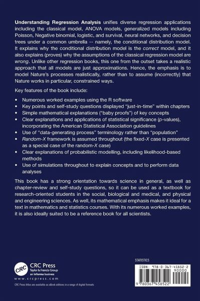 This book unifies diverse regression applications including the classical model, ANOVA models, generalized models including Poisson, Negative binomial, logistic, and survival, neural networks and decision trees under a common umbrella; namely, the conditional distribution model.