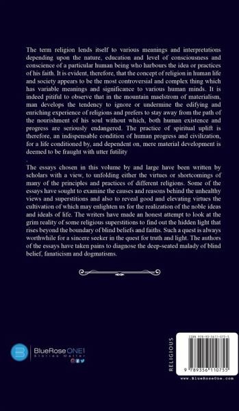 ""The term religion lends itself to various meanings and interpretations depending upon the nature, education and the level of consciousness and conscience of a particular human being who actually harbors the idea or practices of his faith. It is evident therefore, that the concept of religion in human life and society appears to be most controversial and a complex thing which has variable meanings and significance to various human minds. It is indeed pitiful to observe that in the mountain maelstrom of materialism, man develops the tendency to ignore or undermine the edifying and enriching experience of religions and prefers to stay away from the path of the nourishment of his soul without which, both human existence and progress are seriously endangered. The practice of spiritual uplift is therefore, an indispensable condition of human progress and civilization, for a life conditioned by, and dependent on, mere material development is deemed to be fraught with utter futility. The essays chosen in this volume by and large have been written by scholars with a view, to unfolding either the virtues or shortcomings of many of the principles and practices of different religions. Some of the essays have sought to examine the causes and reasons behind the unhealthy views and superstitions and also to reveal a good and elevating virtues the cultivation of which may enlighten us for the realization of the noble ideas and ideals of life. The writers have made an honest attempt to look at the grim reality of some religious superstitions in order to find out the hidden light that rise beyond the boundary of blind beliefs and faiths. Such a quest is always worthwhile for a sincere seeker in quest of truth and light. The authors of the essays have taken pains to diagnose the deep-seated malady of blind belief, fanaticism and dogmatisms.""