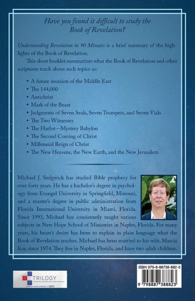 Have you found it difficult to study the Book of Revelation? Understanding Revelation in 90 Minutes is a brief summary of the highlights of the Book of Revelation. This short booklet summarizes what the Book of Revelation and other scriptures teach about such topics as: A future invasion of the Middle East The 144,000 Antichrist Mark of the Beast Judgments of Seven Seals, Seven Trumpets, and Seven Vials The Two Witnesses The Harlot-Mystery Babylon The Second Coming of Christ Millennial Reign of Christ The New Heavens, the New Earth, and the New Jerusalem