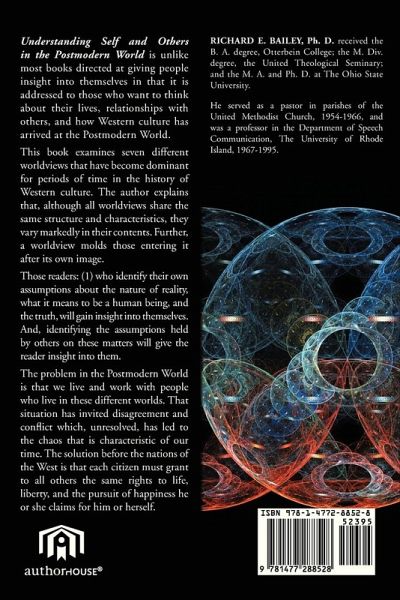 Understanding Self and Others in the Postmodern World is unlike most books directed at giving people insight into themselves in that it is addressed to those who want to think about their lives, relationships with others, and how Western culture has arrived at the Postmodern World. This book examines seven different worldviews that have become dominant for periods of time in the history of Western culture. The author explains that, although all worldviews share the same structure and characteristics, they vary markedly in their contents. Further, a worldview molds those entering it after its own image. Those readers: (1) who identify their own assumptions about the nature of reality, what it means to be a human being, and the truth, will gain insight into themselves. And, identifying the assumptions held by others on these matters will give the reader insight into them. The problem in the Postmodern World is that we live and work with people who live in these different worlds. That situation has invited disagreement and conflict which, unresolved, has led to the chaos that is characteristic of our time. The solution before the nations of the West is that each citizen must grant to all others the same rights to life, liberty, and the pursuit of happiness he or she claims for him or herself.
