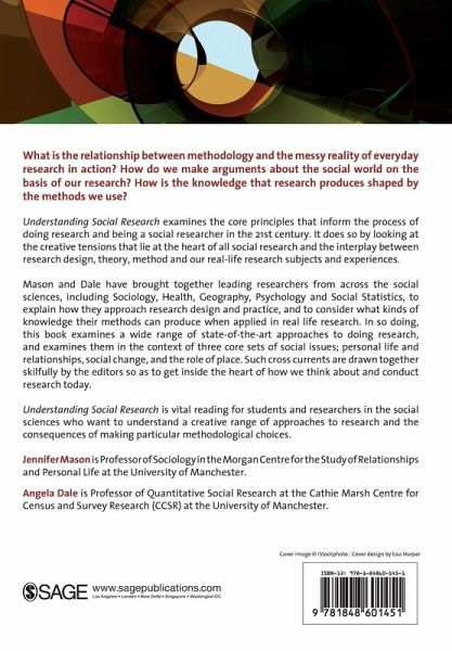 Jennifer Mason and Angela Dale's book seeks to set out cutting-edge developments in the field of social research and to encourage students and researchers to consider ways of learning from different approaches and perspectives in such a way as to make their own research richer, more insightful and more rewarding. Social Researching brings together a wide variety of research methods - both qualitative and quantitative - to help students and researchers to consider the relative benefits of adopting different approaches for their own research work. The authors clearly identify the most appropriate methods for different research questions and also highlight areas where it might be fruitful to compliment different methods with each other or exploit creative tensions between them. The book is therefore a highly practical guide which also seeks to draw readers outside their methodological comfort zones. This book includes: - Critical coverage of issues in research design; - Expert experience in many methodological fields; - An overview of the many different ways to approach similar research problems; - Coverage of the tensions between different methodological approaches; - Examples of excellence in research design and practice; - An examination of how to turn methodological tensions into richer research practice. The methods covered include highly innovative, 'cutting-edge' approaches and they are demonstrated in terms of their transferability between the different social sciences. This inter-disciplinary approach is complimented by a wide range of strategically chosen examples which demonstrate the authors' pragmatic and creative take on research design.
