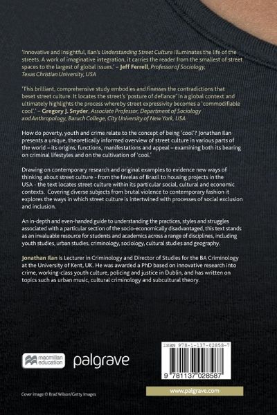 How do poverty, youth and crime relate to the concept of being 'cool'? Jonathan Ilan presents a unique, theoretically informed overview of street culture in various parts of the world - its origins, functions, manifestations and appeal - examining both its bearing on criminal lifestyles and on the cultivation of 'cool.' Drawing on contemporary research and original examples to evidence new ways of thinking about street culture - from the favelas of Brazil to housing projects in the USA - the text locates street culture within its particular social, cultural and economic contexts. Covering diverse subjects from brutal violence to contemporary fashion it explores the ways in which street culture is intertwined with processes of social exclusion and inclusion. An in-depth and even-handed guide to understanding the practices, styles and struggles associated with a particular section of the socio-economically disadvantaged, this text stands as an invaluable resource for students and academics across a range of disciplines, including youth studies, urban studies, criminology, sociology, cultural studies and geography.