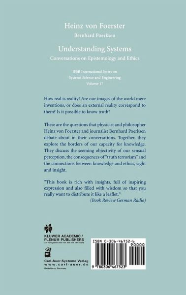 Preface. A Foreword in Three Acts. I: Images of Reality. 1. Biology of Perception. The representation of the world. We never see the same thing. A short skit. Decision against solipsism. 2. Facets of Truth. Truth means war. The hidden workings of nature. The ethical imperative. Loss of the archimedic point. The metaphor of the dance. 3. The Danger of the Label. Skeptical remarks on Constructivism. An attempt to get around the big words. 4. Explaining the Explanation. Cause and effect. Laws of people and laws of nature. Why Socrates had to die. Trivial and nontrivial machines. The interaction of nontrivial machines. II: Perspectives in Practice. 1. Teaching. The pupil as a nontrivial machine. "Tests test tests". From teacher to researcher. Outline of an experiment. 2. Psychotherapy. The distinction between sickness and health. Generating a new eigenbehavior. Learning to see white mice. 3. Management. Thus spake the hierarchy. Thinking heterarchically. The Battle of Midway. Principles of self-organization. 4. Communication. The world contains no information. Hermeneutics of the listener. Realities of the media. III: Cybernetics. The Fundamental Principle: Circularity. People and Machines. The Computer Metaphor of the Mind. Cybernetics of Cybernetics. We Do not See that We Do not See. All Cretans Lie. IV: Biographical Excursions. 1. Childhood and Youth. The world of Vienna. Ludwig Wittgenstein. Experiences of a magician. 2. The Second World War and the Post-war Period. Survival in Berlin, the capital of the Reich. As "Dr. Heinrich" on the radio. Collective guilt or individual responsibility. 3. A Jump to another World: America. Theory of memory. Beginnings of Cybernetics: The Macy Conferences. The Biological Computer Laboratory. V: Knowledge and Ethics. Ethics is not a Theory. Decidable and Undecidable Questions. Responsibility for the World. About the Authors.